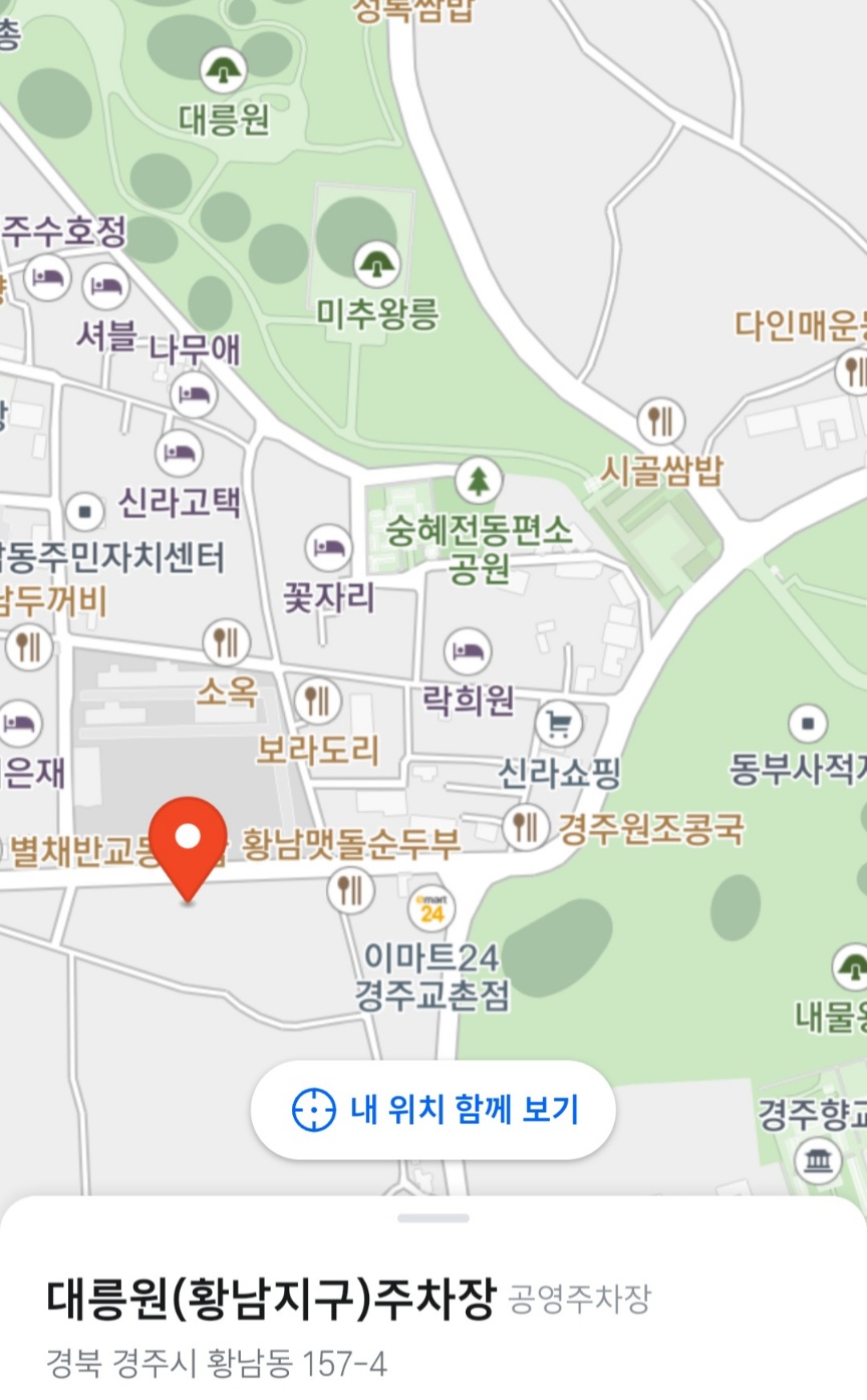 대릉원 돌담주차장 (T맵에는 ‘대릉원 돌담주차장’이라고 적혀있습니다)